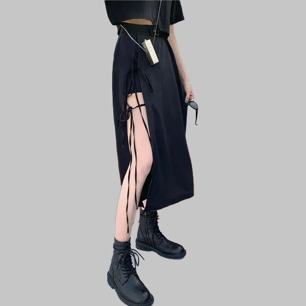 Una falda larga negra con abertura es la esencia de la elegancia y el estilo oscuro. El escote agrega atractivo sexual y modernidad a la falda, enfatizando las piernas y agregando ligereza. Fabricado con materiales de alta calidad, es perfecto tanto para el uso diario como para ocasiones especiales. Combínalo con un top ajustado o una blusa de encaje para crear un look gótico llamativo. Una excelente opción para quienes quieren añadir un poco de misterio y clase a su guardarropa.