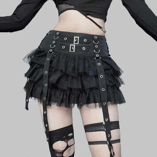 Nuestra falda gótica con volantes y tirantes es la esencia de la elegancia oscura y el estilo sofisticado. Los volantes le dan a la falda un volumen y dramatismo extraordinarios, enfatizando la estética gótica. Las rayas añaden carácter y profundidad a la falda, creando un patrón único y un contraste en el estilo. Fabricada con materiales de alta calidad, nuestra falda gótica con volantes y tirantes es la elección perfecta para quienes desean expresar su individualidad a través de un look gótico oscuro pero romántico. Añade un toque de magia y glamour oscuro a tu guardarropa con esta falda única.