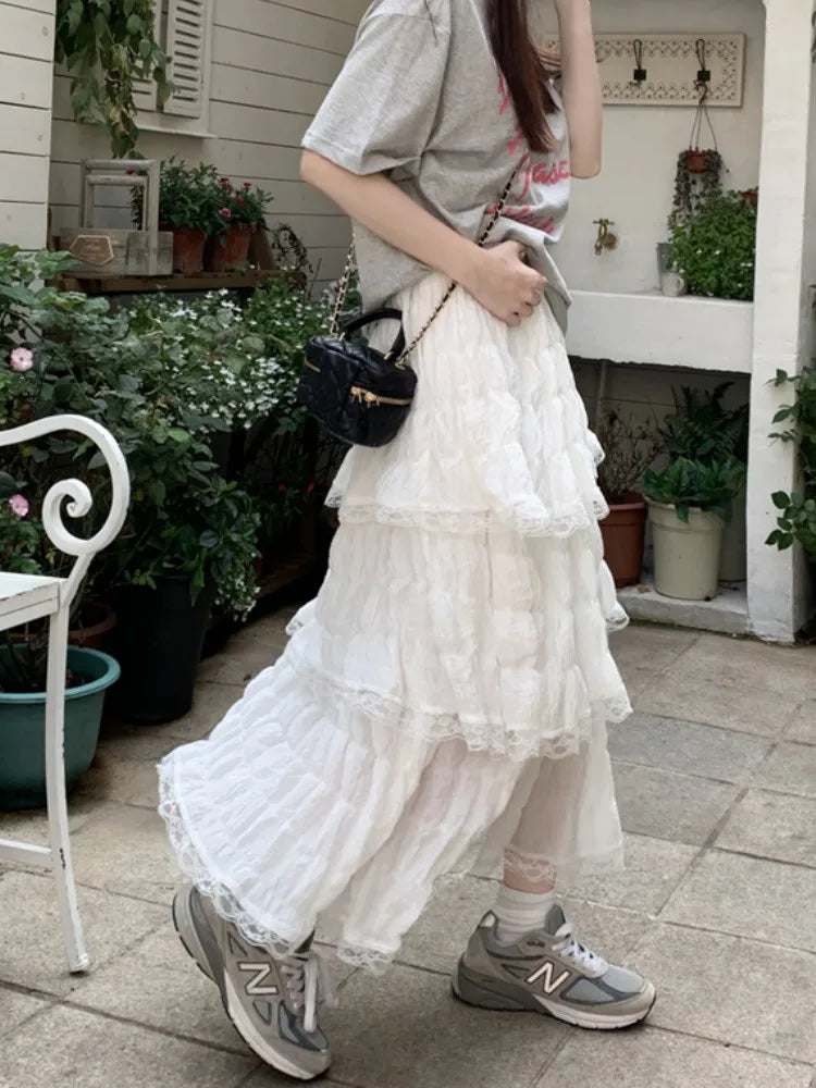 Una falda gótica larga en versión blanca es un punto culminante perfecto de tu estilo en los días de primavera.
