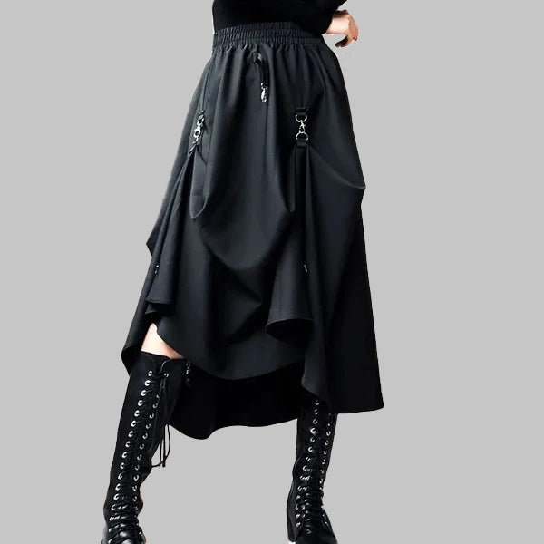 Nuestra falda gótica larga es la elección perfecta para cualquiera que busque un look oscuro y misterioso. Gracias a su tejido fluido en color Negro y a su corte largo y elegante, esta falda te hará destacar en cualquier situación. Independientemente de si la combinas con una camisa gótica, un corsé o un top elegante, nuestra falda larga gótica agregará un toque de oscuridad a tu estilo.