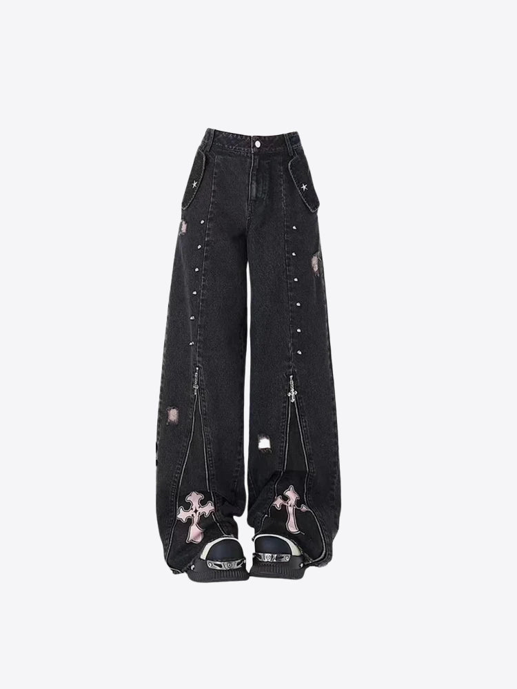Vaqueros con cremallera de los años 90 - Negro : Dale vida a tu guardarropa con estos jeans negros con cremallera estilo años 90 . Su diseño retro y un elemento adicional en forma de cremallera les dan un carácter único, perfecto para los amantes de la nostalgia y el estilo vintage. Mira también nuestras faldas góticas .