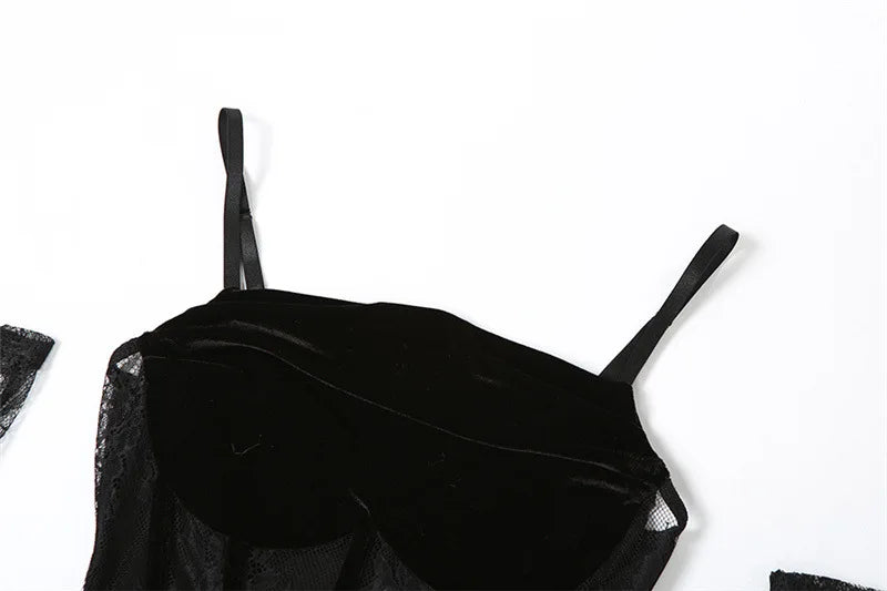 Vestido gótico con parche de encaje : Añade un toque de romanticismo oscuro a tu guardarropa con este vestido gótico con parche de encaje. Su diseño refinado y su delicado parche de encaje enfatizan la elegancia y el misterio. Consulta también otros vestidos góticos disponibles en nuestra tienda.
