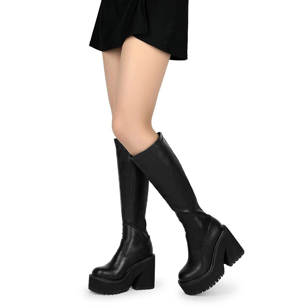 Wysokie buty gotyckie na koturnach to idealny wybór dla każdego, kto chce zrobić odważne i ostre oświadczenie swoim obuwiem. Te oszałamiające buty mają inspirowany gotykiem design z misternymi detalami kotwicy, nadając im niepowtarzalny i przyciągający wzrok wygląd. Podeszwa na platformie dodaje wysokości i ostrego akcentu, dzięki czemu te buty są idealne do dodania dodatkowej postawy do stroju.